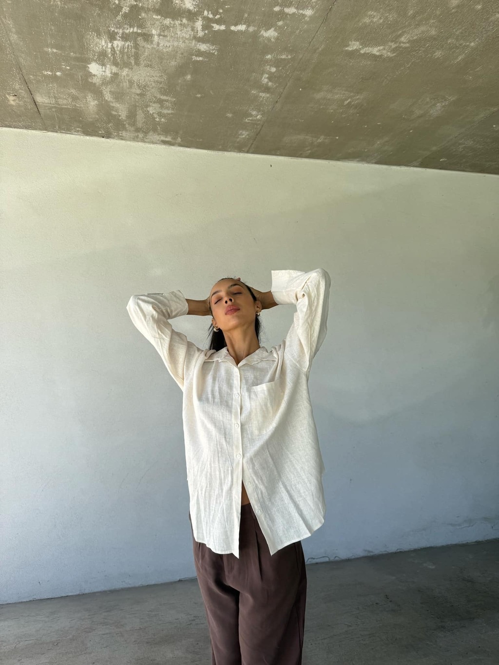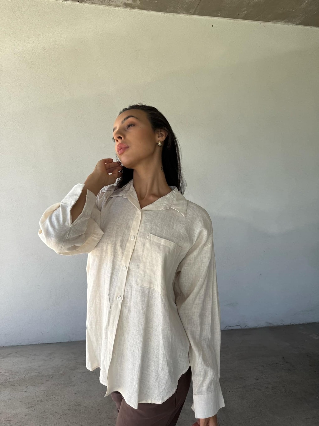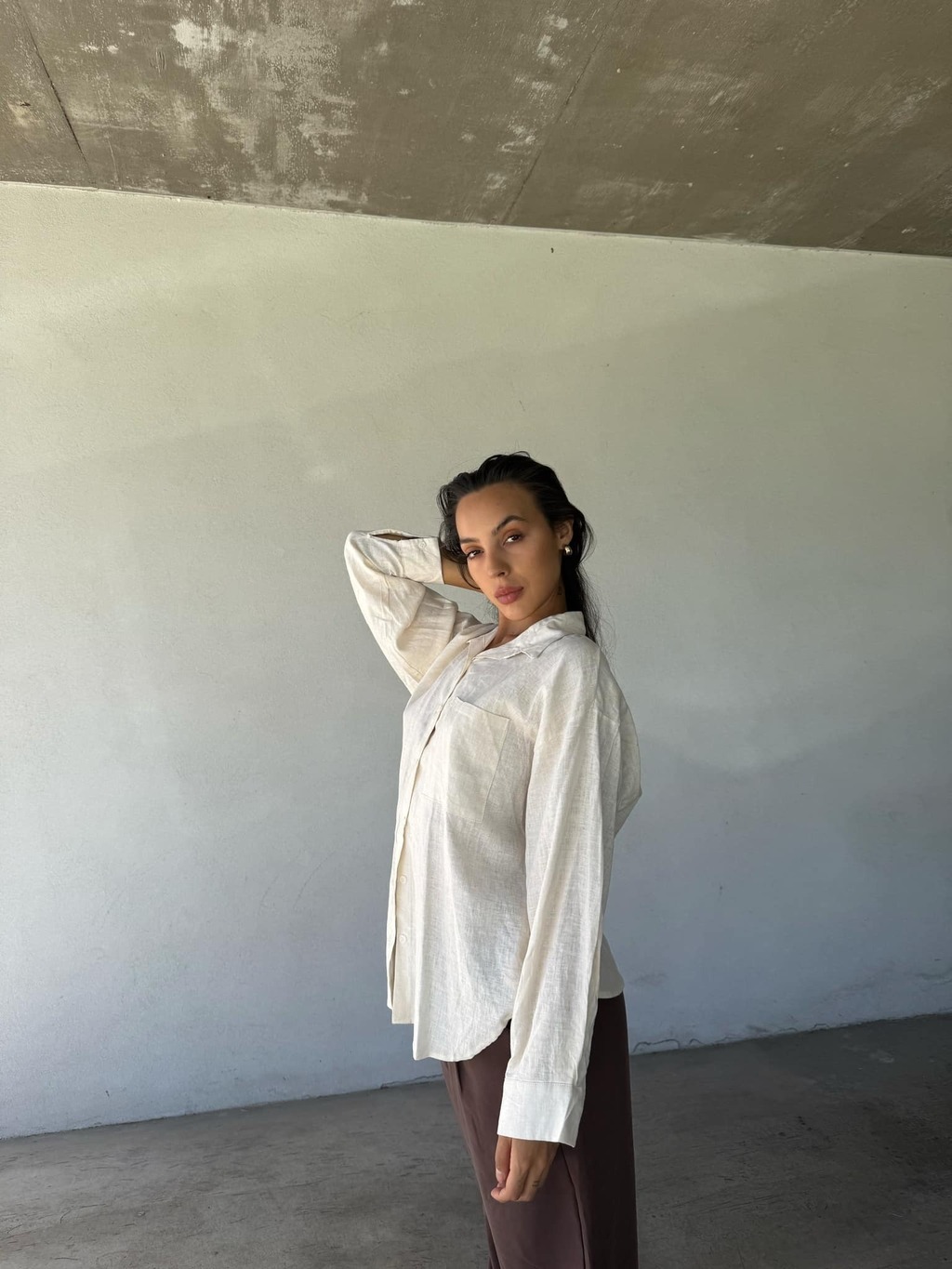 Camisa de lino con botones de pasta al tono