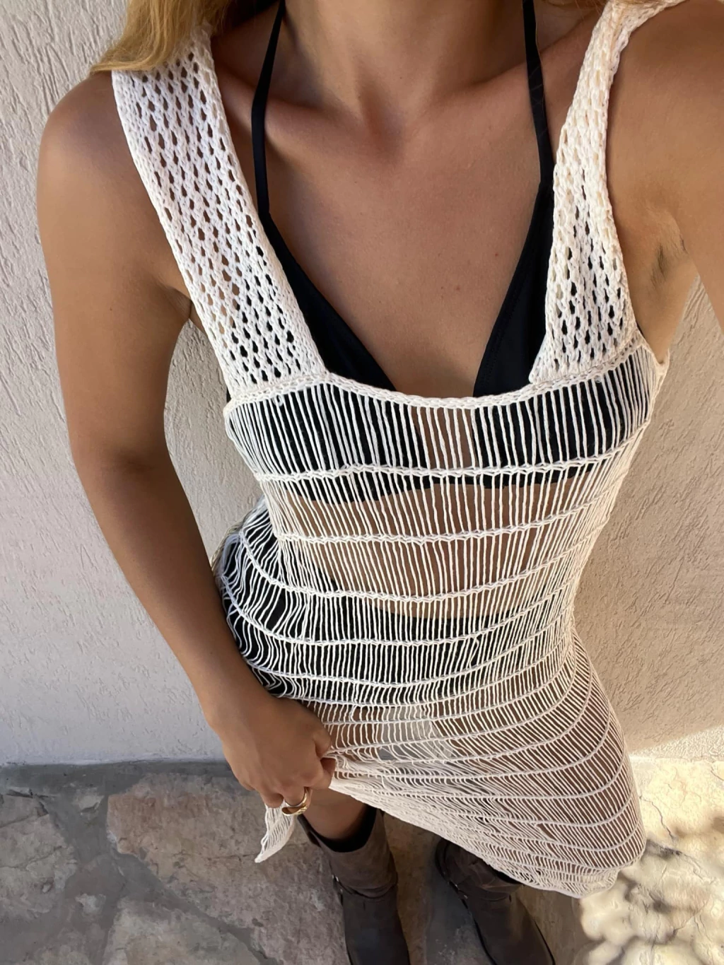 Vestido tejido desagujado en hilo de algodon